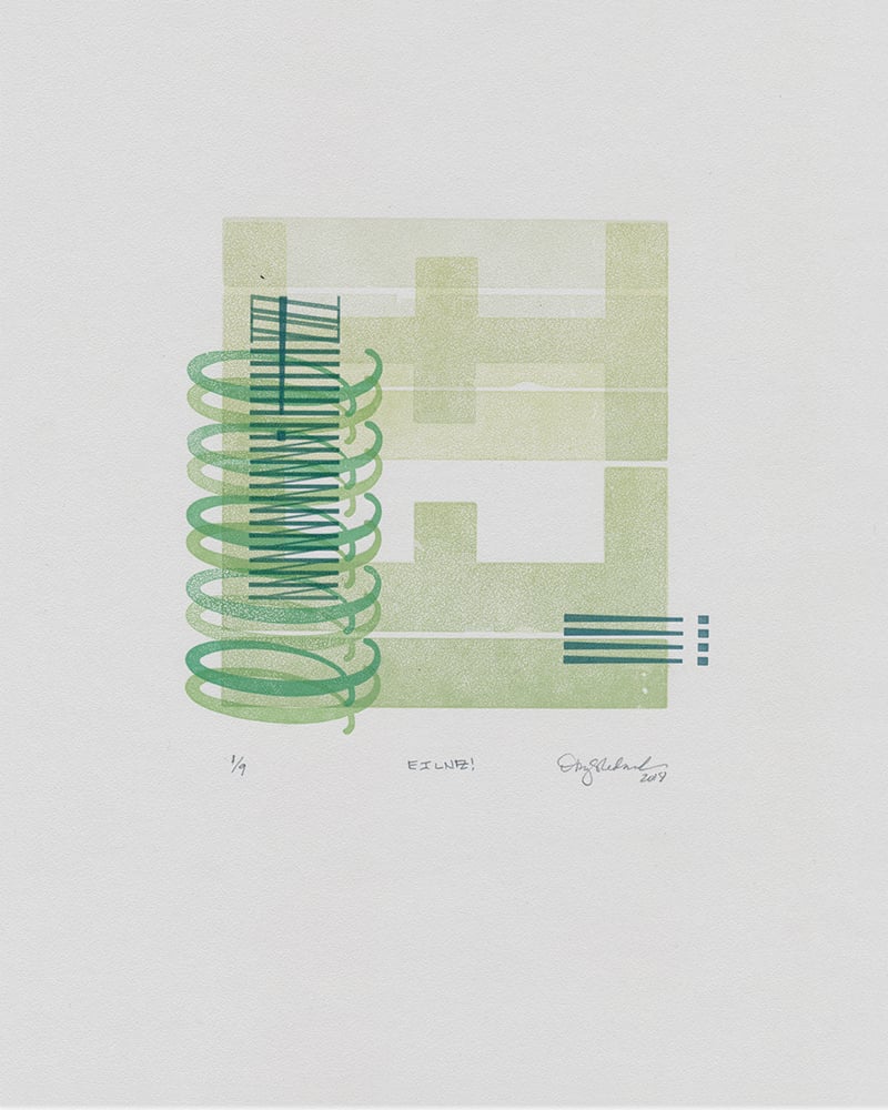 This print is part of an iterative series exploring type as image. It is composed of metal and wood types, set by hand one character at a time, and overprinted in several layers.