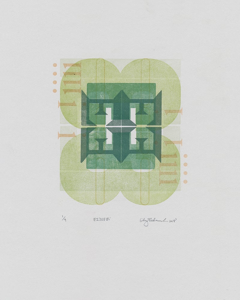 This print is part of an iterative series exploring type as image. It is composed of metal and wood types, set by hand one character at a time, and overprinted in several layers.