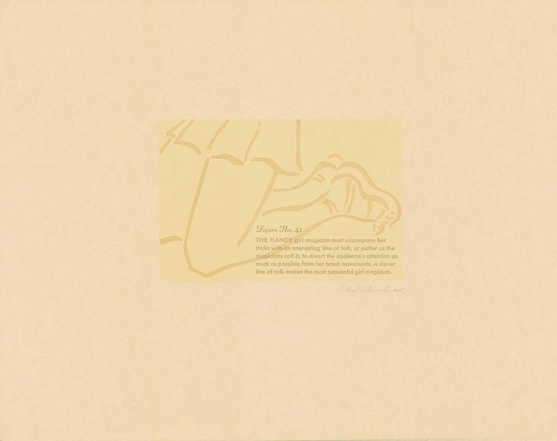 This print is part of the Handy Girl Series, inspired by an old book called "The Handy Boy." With a slight alteration of the text, juxtaposed with an illustration of a female, the viewer is asked to reconsider the meaning of the book from the viewpoint of women.
