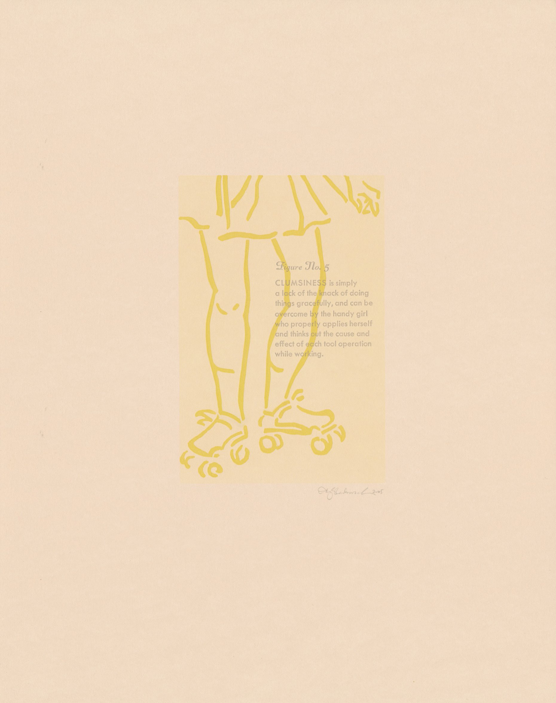 This print is part of the Handy Girl Series, inspired by an old book called "The Handy Boy." With a slight alteration of the text, juxtaposed with illustrations of females, the viewer is asked to reconsider the meaning of the book from the viewpoint of women.